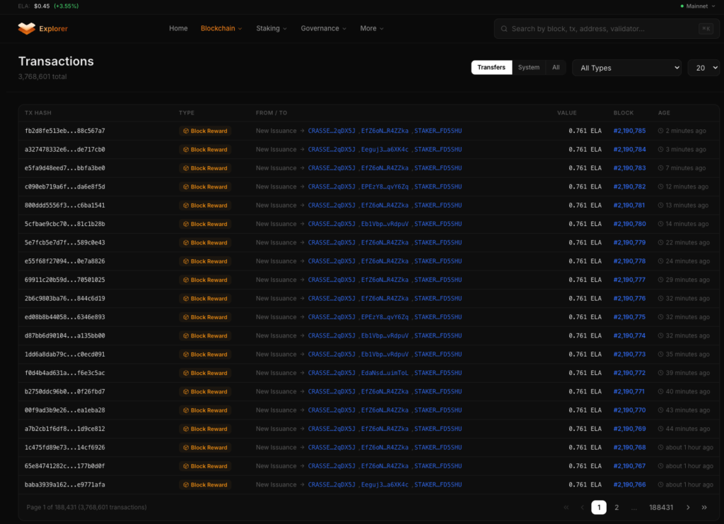 The Elastos community has lacked a modern, comprehensive tool for viewing network activity for the Elastos main chain. People need accessible ways to look up blocks, transactions, validators, staking positions, and governance activity without relying on third-party services that may disappear or restrict access.