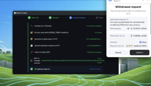 - Encrypt & upload — your file gets locked with military-grade encryption and stored on the decentralized IPFS network. Even if someone intercepts the file, they can’t open it without the key