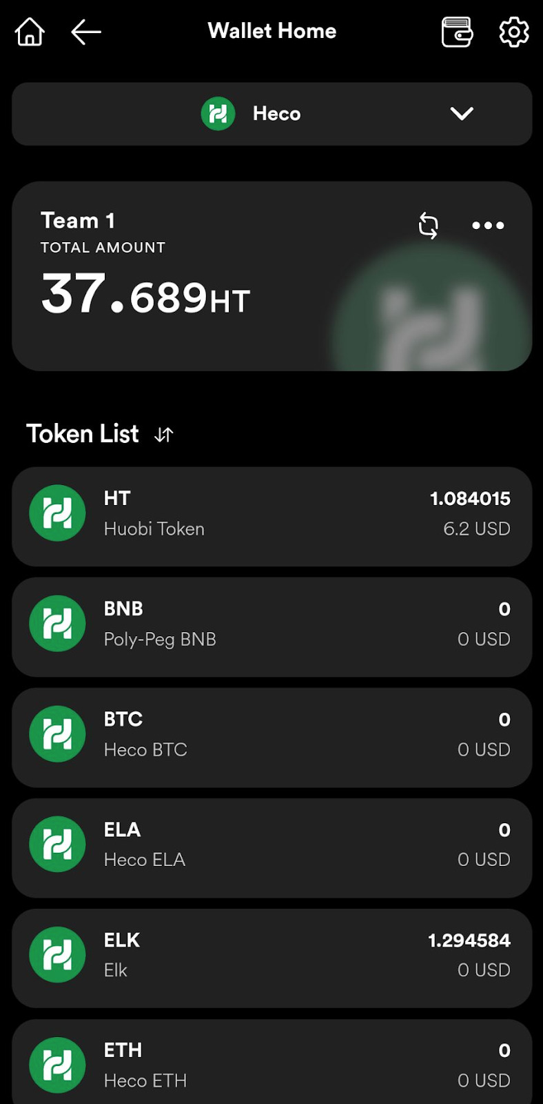 - Active wallet